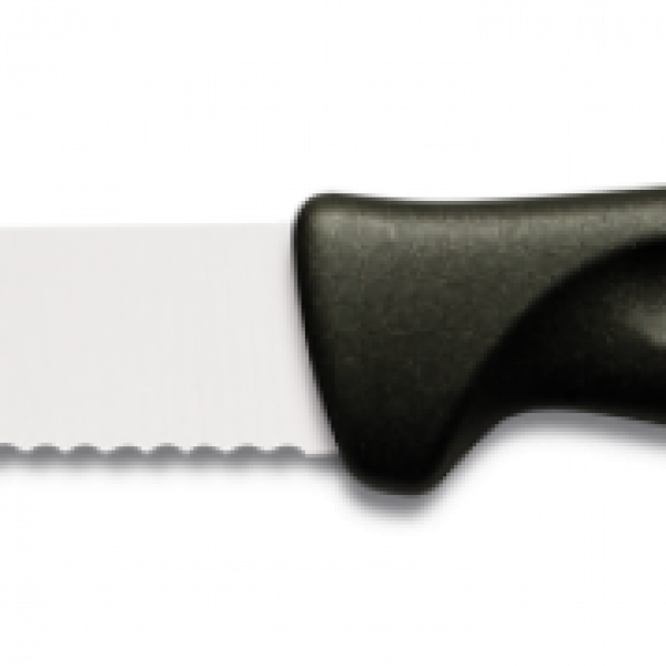 Wielofunkcyjny i uniwersalny nóż to jedna z nowszych propozycji marki Wusthof. 10 cm nóż ma ząbkowane ostrze ze stali nierdzewnej oraz zaokrąglony czubek i jest niezastąpiony podczas drobnych prac kuchennych. Świetnie radzi sobie z krojeniem warzyw i owoców z miękką skórką, np. pomidorów. Nadaje się również do krojenia bułek, twardych wędlin czy sera. Czarna rękojeść wykonana jest z antypoślizgowego tworzywa i ma ergonomiczny kształt. Nóż ceniony przez profesjonalistów sztuki kulinarnej oraz początkujących domowych kucharzy. Wymiary: Długość ostrza: 10 cm Długość całkowita: 20,5 cm Jakość oraz precyzję wykonania zapewnia firma Wüsthof - Made in Germany/Solingen.