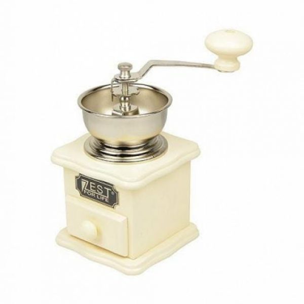 Tradycyjny młynek ręczny, w drewnianej obudowie koloru białego z praktyczną szufladką na zmieloną kawę. Młynek wyposażony jest w mechanizm mielący wykonany z żeliwa, dzięki czemu jest on bardzo trwały i precyzyjny. Ponadto mechanizm posiada regulację mielenia, więc sami możemy decydować jaki stopień zmielenia ziaren chcemy uzyskać. Ręczne mielenie ziaren kawy jest znacznie lepszym sposobem niż przy użyciu młynków elektrycznych, gdyż mechanizmy w młynkach ręcznych nie nagrzewają się, dzięki czemu zmielona kawa jest bardziej aromatyczna. Młynki marki Zest for Life zostały wyprodukowane z myślą o miłośnikach świeżo zmielonej i aromatycznej kawy, a ich jakość jest wysoko oceniana przez użytkowników.