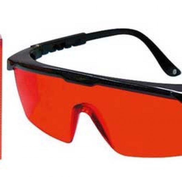 Do laserów z czerwoną wiązką, zestaw z tarczą celowniczą i okularami.