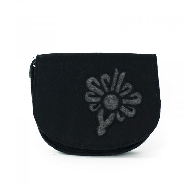 Filcowa torebka z wyciętym motywem parzenicy. Zapinana na magnes. W środku mała przegródka zapinana na zamek i przegródka na telefon. Regulowana długość ucha. Ta urocza torebka będzie idealnym dopełnieniem stylizacji nie tylko w duchu folkowym, ale i casualowym.