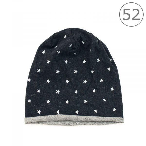 Dziecięca czapka w fasonie beanie. Ozdobiona nadrukiem w gwiadki. Delikatnie rozciągliwa, w środku ocieplona milutkim meszkiem. Ta czapka świetnie sprawdzi się w czasie pierwszych chłodów.