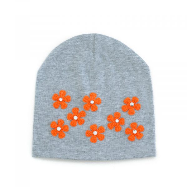 Urocza dziecięca czapka ozdobiona kwiatuszkami. Wykonana z miękkiego, podwójnego materiału. Jest rozciągliwa. Ta czapka łączy w sobie komfort noszenia oraz stylowy dziewczęcy design.
