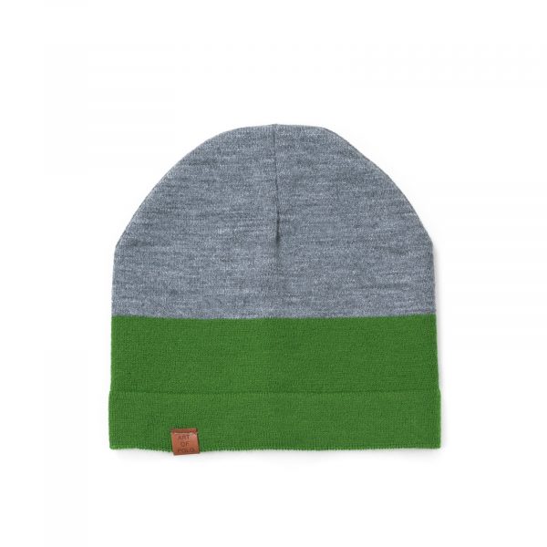 Dziecięca dwukolorowa czapka. Wykonana z niegryzącego materiału, miękka w dotyku. Czapka jest mocno rozciągliwa i dobrze przylega do głowy, dzięki czemu jest łatwa w nakładaniu i noszeniu.