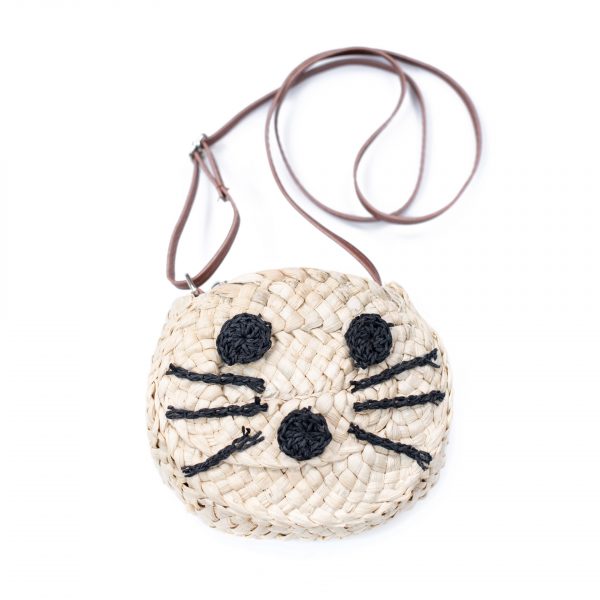 Mała torebka w formie koszyczka. Zamykana na zamek. W środku podszewka. Regulowane ucho z ekoskóry. Torebka ozdobiona jest wzorem w kształcie kociej buźki. Doda uroku letnim dziewczęcym stylizacjom. Pokochają ją zarówno mali, jak i duzi.