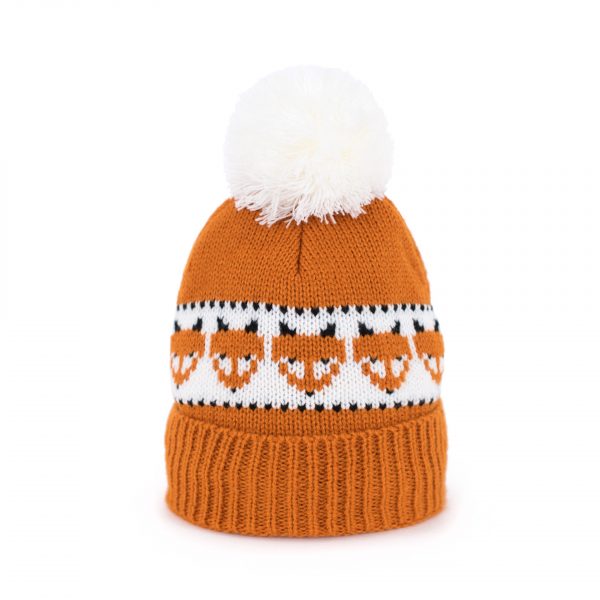 Wyjątkowa czapka dziecięca ozdobiona liskami. Zakończona dużym pomponem. Od wewnątrz ocieplona sztucznym futrem dzięki czemu jest bardzo ciepła. Ten uroczy dodatek świetnie ochroni głowę malucha przed mrozem.