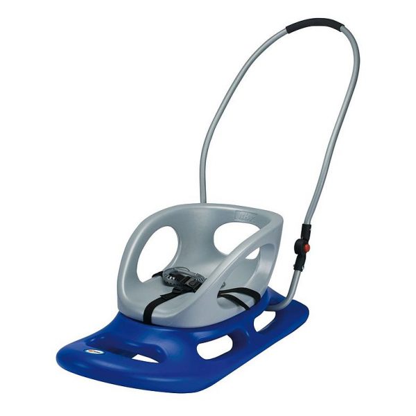 Stabilne sanki przeznaczone dla małych dzieci, wyposażone w wygodny fotelik z paskiem do przymocowania dziecka i składaną rączkę do prowadzenia sanek przez dorosłych. Gdy dziecko podrośnie, można odkręcić fotelik i rączkę do pchania, wtedy sanki posłużą jeszcze przez kolejnych kilka lat. Płozy ze stali nierdzewnej gwarantują długi czas eksploatacji.