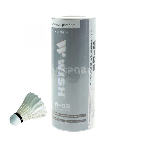 Piórowe lotki treningowe z korkową bazą .Koszyczek w tym modelu został wykonany z piór kaczych, zapewniając tym samym większą kontrolę ,a także właściwą trajektorię lotu. Zastosowanie korka naturalnego jako bazy gwarantuje natomiast duży komfort noszenia i osiągania większej szybkości lotu. Model W - 09 przeznaczony do gry na wolnym powietrzu, jak i również w zamkniętych obiektach.