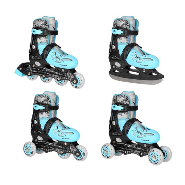 Rolki + łyżwy + wrotki 4w1, łyżworolki dziecięce NH0320A blue