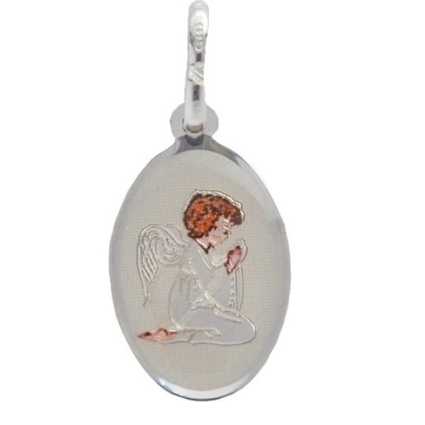 Medalik srebrny z kolorowym wizerunkiem Aniołka modlącego się