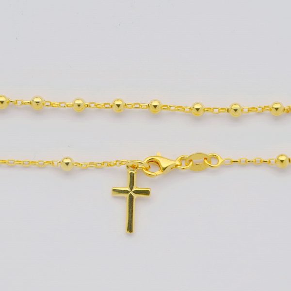 Różaniec srebrny, pozłacany, składający się z jednej dziesiątki różańca w formie bransoletki zapinanej na rękę.