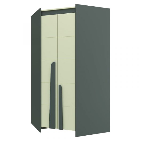Szafa narożna głęboka TES-3C TeenWymiary:- szerokość - 102,2 cm,- wysokość - 195,8 cm,- głębokość - 102,2 cm Niezależnie od wyboru koloru cokołów, uchwyty metalowe dołączone są do wszystkich mebli z frontami. Dostępna kolorystyka: Korpus: Antracyt/ beż Front: Beż