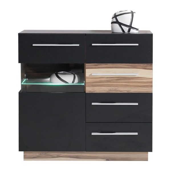 Komoda MN6 Monsun - biały lux/orzech batimore lub czarny/orzech batimore
