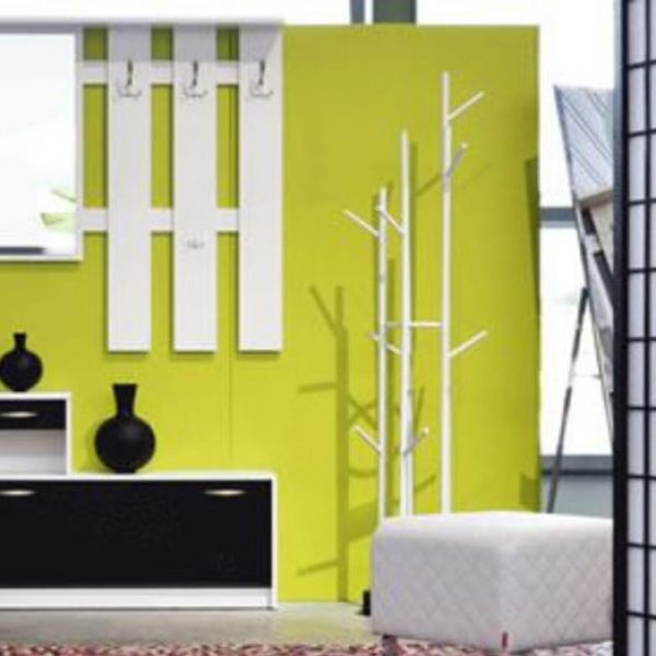 Komplet mebli do przedpokoju Rudolf składa się z:-szafki na buty z szufladą-wieszak z lustrem Wymiary: - szerokość - 100 cm, - wysokość - 187 cm, - głębokość - 25 cm Zestaw dostępny jest w kolorze biały/czarny