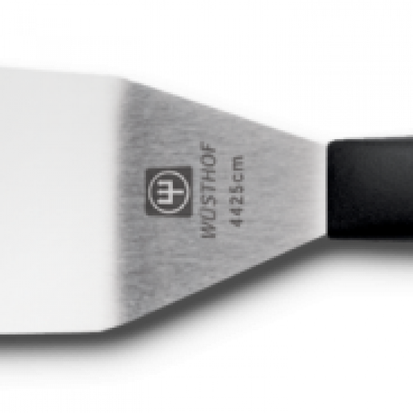 Wielofunkcyjne narzedzie z serii Silverpoint niemieckiej marki Wusthof. Część robocza ma 12 cm długości, jest wykonana ze stali nierdzewnej. Jest cienka, a mimo to utrzymuje ciężar żywności. Idealna do obracania podczas smażenia lub pieczenia delikatnych kawałków, np. ryb. Zaostrzona krawędź wsunie się pod potrawę, nie krusząc jej. Seria Silverpoint to noże, których kształty są wycinane metodą laserową z arkusza stalowej blachy. Jest to tańszy sposób produkcji, ale nie ma to wpływu na jakość końcowego wyrobu. Rękojeść wykonana jest z polipropylenu, który jest nieskomplikowany do utrzymania w czystości, ponadto uchwyt ma ergonomiczny kształt. Na końcu uchwytu umieszczone jest srebrne koło, z wytłoczonym trójzębem - logo firmy, stąd też nazwa ‘silverpoint’ z jęz. angielskiego to „srebrny punkt”. Wymiary: Długość ostrza: 12 cm Długość całkowita: 20,5 cm Jakość oraz precyzję wykonania zapewnia firma Wüsthof - Made in Germany/Solingen.