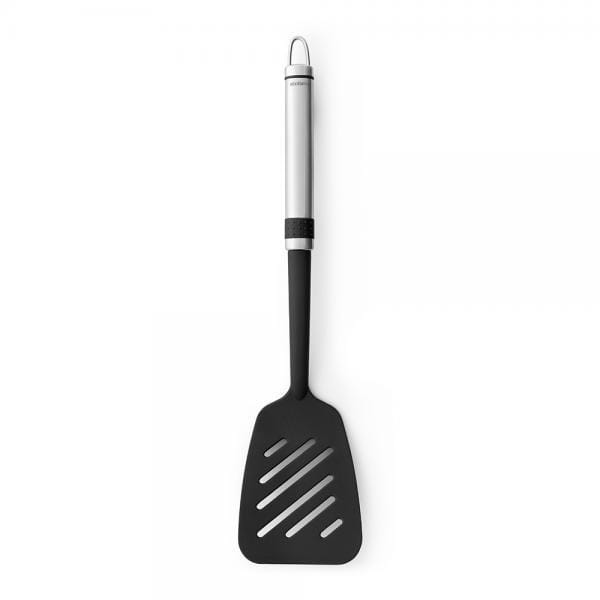 Duża łopatka, której bez obaw o zarysowania możesz używać podczas smażenia na patelniach z powłoką typu non-stick, np, teflonowych. Łopatka posiada otwory, które odsączają nadmiar tłuszczu. Wykonana z trwałych materiałów: nylonu odpornego na wysokie temperatury (maks. 220°C) oraz stali nierdzewnej. Narzędzie jest łatwe w czyszczeniu, nie posiada zbędnych łączeń, przez co jest bardziej higieniczne. Można je myć zmywarce Rączka ze stali matowej, zakończona jest niewielkim haczykiem, umożliwiającym zawieszenie narzędzia, np. na relingu kuchennym. Wymiary: Długość: 35,5 cm Szerokość: 8 cm Wysokość: 2 cm Wysoką jakość potwierdza 5-letnia gwarancja producenta!