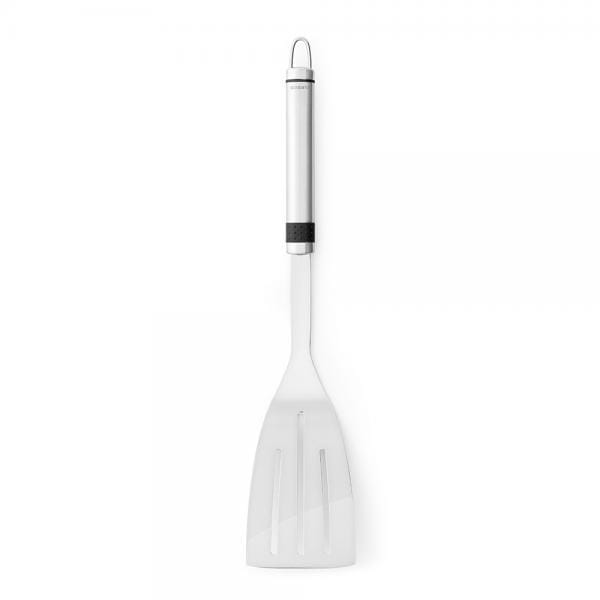 Stalowa łopatka do przewracania i wyjmowania smażonych potraw. Posiada otwory, które odsączają nadmiar tłuszczu. Wyprofilowany kształt ułatwia przewracanie smażonych produktów. Jej konstrukcja jest niezwykle higieniczna, bez spoin i zagłębień. Rączka ze stali matowej, zakończona jest niewielkim haczykiem, umożliwiającym zawieszenie narzędzia, np. na relingu kuchennym. Łopatkę można myć zmywarce Wymiary: Długość: 35,7 cm Szerokość: 7,3 cm Wysokość: 5 cm Wysoką jakość potwierdza 5-letnia gwarancja producenta!
