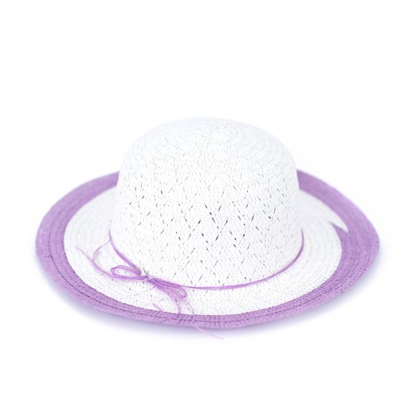 Dziecięcy kapelusz ozdobiony sznurkiem. Wykonany z włókien naturalnych. Kapelusz ma gumeczkę, którą można naciągnąć pod brodę, by kapelusz lepiej się trzymał. Urocza ochrona głowy dla dziecka.