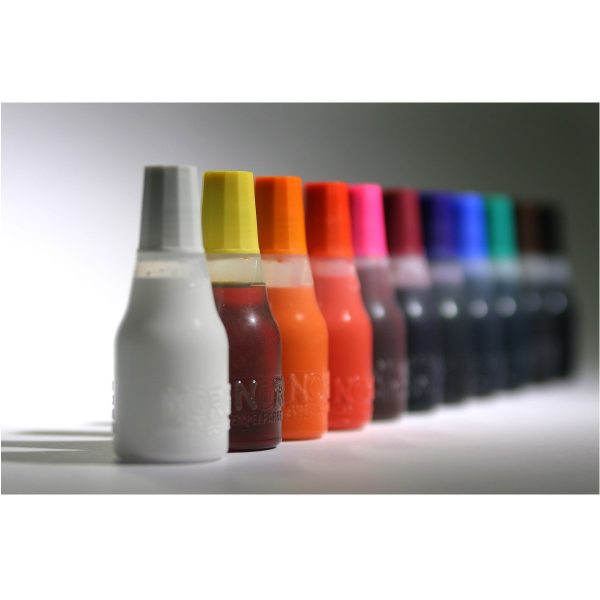 Tusz wodny bezolejowy do znakowania papieru, dokumentów, do stempli ręcznych i samotuszujących Idealny do stempli z gumową lub polimerową płytką stemplującą Wygodna końcówka ułatwiająca aplikację Zakrętka w kolorze tuszu Kolory: czarny, czerwony, fiolet, niebieski, zielony Pojemność 25 ml