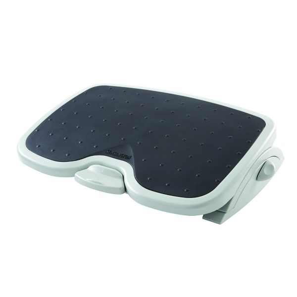 Podnóżki utrzymują nogi na podwyższeniu zapewniając lepszą pozycję i krążenie podczas pracy przy biurku oraz zmniejszają nacisk na dolą część pleców Pochylenie w zakresie 20 stopni zapewnia dodatkową wygodę Dostosowanie wysokości od 3,5" do 5" Teksturowany panel zapobiega ślizganiu się stóp Wytrzymała konstrukcja Wymiary: 450x350mm Kolor: szary