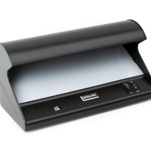 Profesjonalny tester banknotów stosowany przez banki Świetlówka UV (11W) do sprawdzania elementów widocznych w ultrafiolecie Świetlówka biała (6W) do sprawdzania znaków wodnych Możliwość stosowania tego modelu w dowolnych warunkach otoczenia Wymiary: 280x140x145 mm