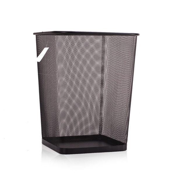 Oryginalny i elegancki kosz do biura i do domu Wykonany z cienkiej siatki metalowej W kształcie kwadratu Długość górnej krawędzi 280 mm, wysokość 355 mm Dostępne kolory: czarny, srebrny