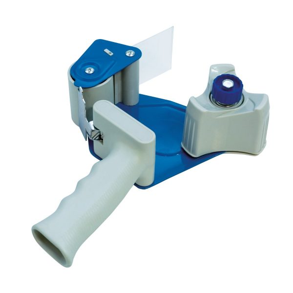 Dyspenser do taśmy wykonany z metalu Wyposażony w regulację naciągu taśmy oraz hamulec Łatwy i bezpieczny proces wymiany rolki Gilotynka ułatwia równe odrywanie fragmentów taśmy Posiada antypoślizgowe zabezpieczenia Ząbki wykonane ze stali nierdzewnej Produkt oferowany bez taśmy Rozmiar: 2 Kolor szaro-niebieski